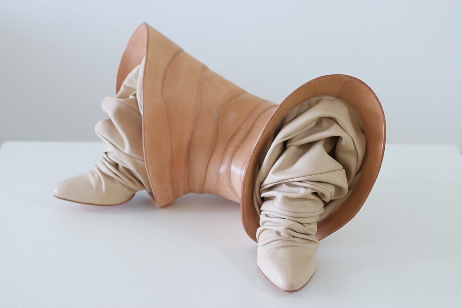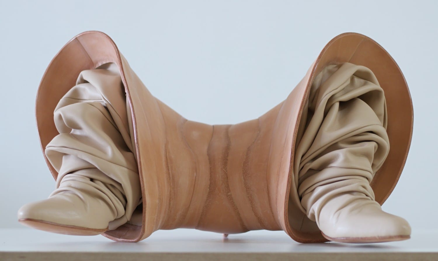 These are the emotions I wrestle with in my studio, exploring them through leather and wood, through form and the empty space between forms. My sculpture, named "Coexistence," is my attempt to understand this kind of relationship—one that has settled into a quiet, suffocating comfort. A partnership where two people move in parallel lines that will never meet, held together only by the gravity of habit. They are a couple in definition, but not in spirit—trapped in a connection that no longer breathes.