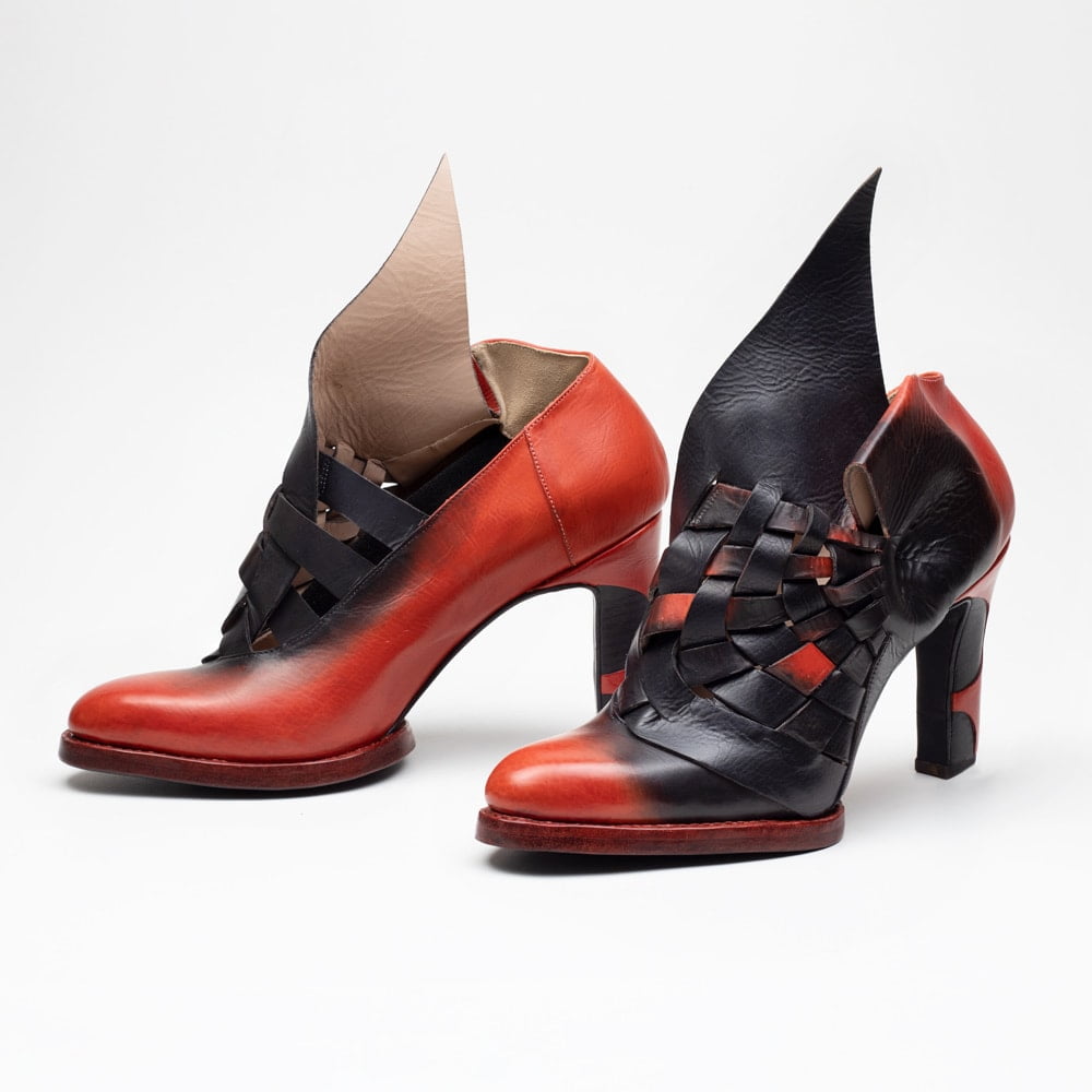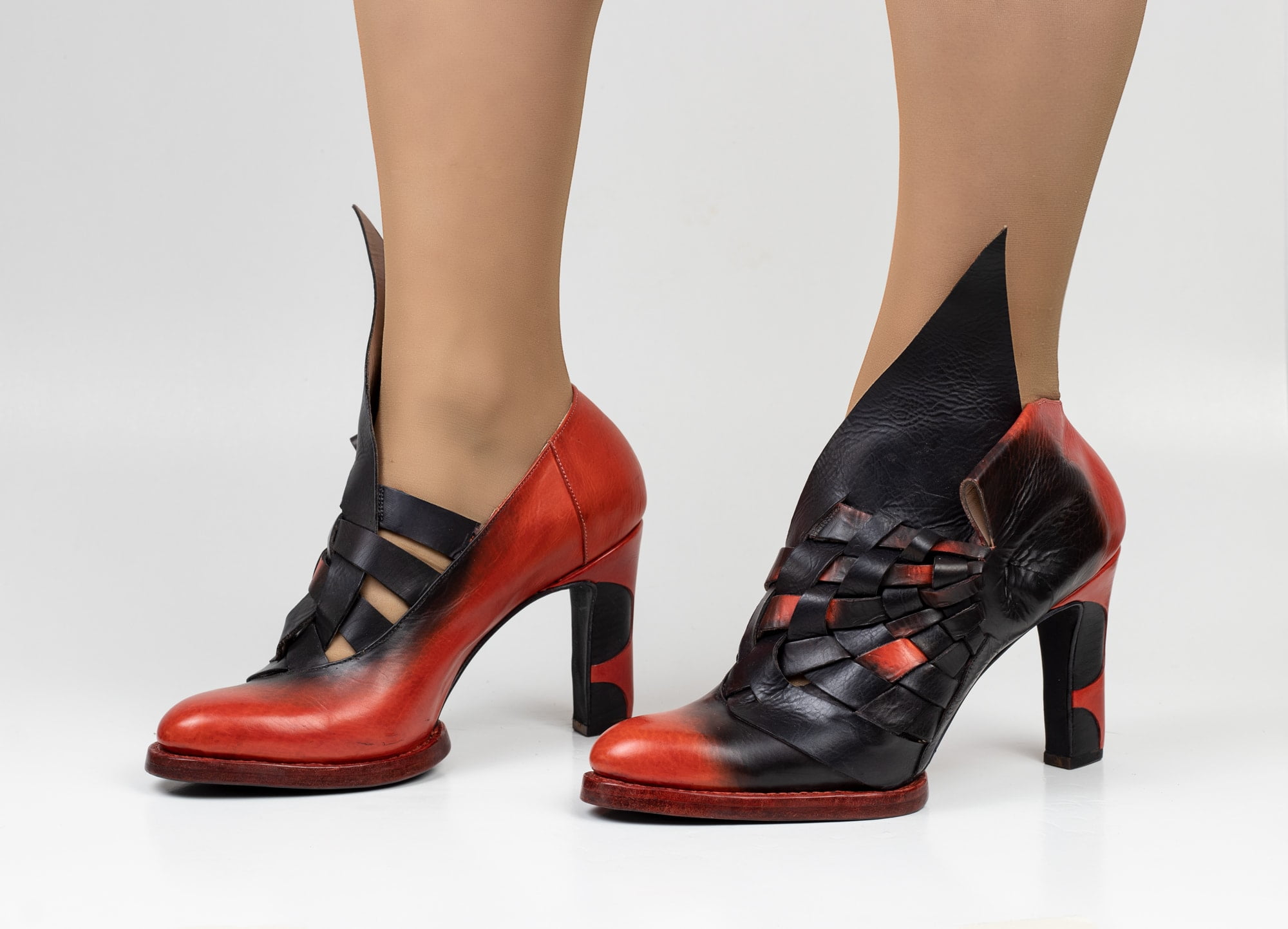 The dragon-inspired footwear was designed by Sveta Kletina to uplift women and serve as a reminder of their own strength and potential. The dragons on these shoes aren't supposed to be menacing creatures, but rather representations of resilience and inner power. The elaborate patterns and dramatic colors are meant to attract the viewer's attention and arouse confidence.